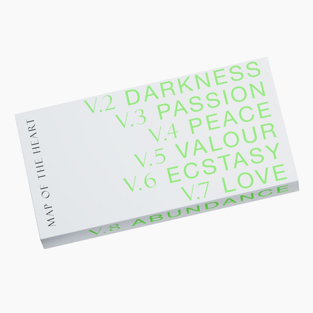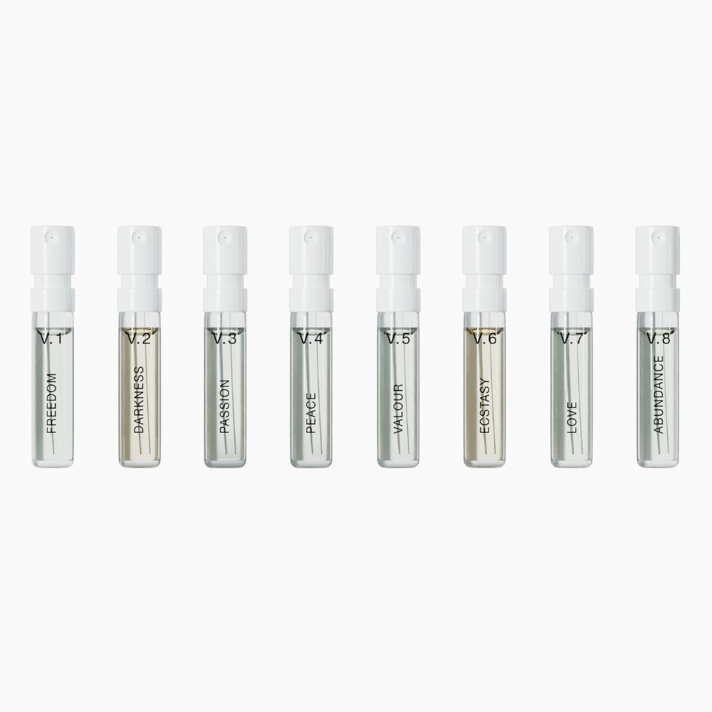 Rinkinį sudaro aštuoni 2 ml purškiami mėginukai iš visos Map of the Heart kolekcijos ir papildomas 2 ml V.9 Wonder – Wellbeing aromato buteliukas. Kiekvienas kvapas supažindina su skirtinga emocija ir istorija, leidžiančia „išmatuoti“ savo skonį ir atrasti aromatą, kuris tave įkvepia tikrai stipriai.