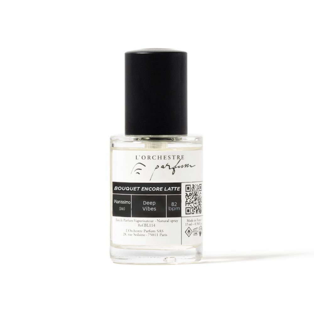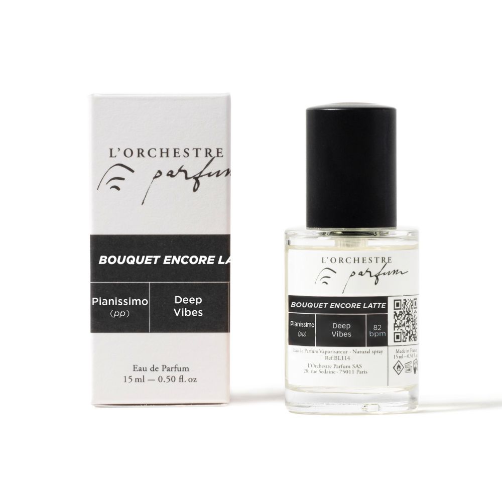 L‘Orchestre Parfum Bouquet Encore Latte – tai unisex nišiniai kvepalai, jungiantys muziką, pojūčius ir sapnus. Jausmingi, gundantys, subtilūs – lyg tylus rytinis akordas, sklindantis ant odos.